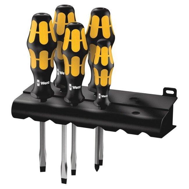 — 5 предметов в комплекте с настенным держателем для отвёрток.