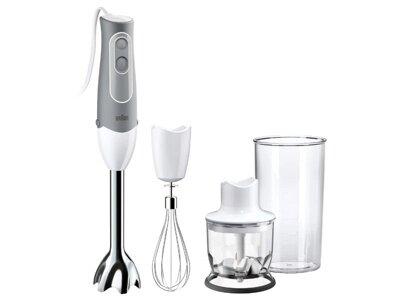 * Мощность: 600 Вт* Количество скоростей: 2* Оборотов в минуту:12500* Мощный и тихий мотор* Материал погружной части: нержавеющая сталь* Метеллическая насадка-блендер препятствует разбрызгиванию* Материал ножей: нержавеющая сталь* Съёмные части можно мыть в посудомоечной машине* Прорезиненная ручка* Легкое присоединение насадок «Easy click»* Мерный стакан* Измельчитель: 350 мл* Венчик из нержавеющей стали* Производитель: DE’LONGHI BRAUN HOUSEHOLD GmbH, Carl-Ulrich-Street 4, 63263 Neu-Isenburg, GERMANY