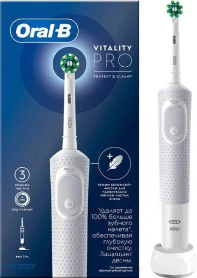 Главная Техника для здоровья и красоты Электрические зубные щетки Электрическая зубнaя щеткa Braun Oral-B Vitality Pro D103.413.3 Cross Action Protect X Clean White