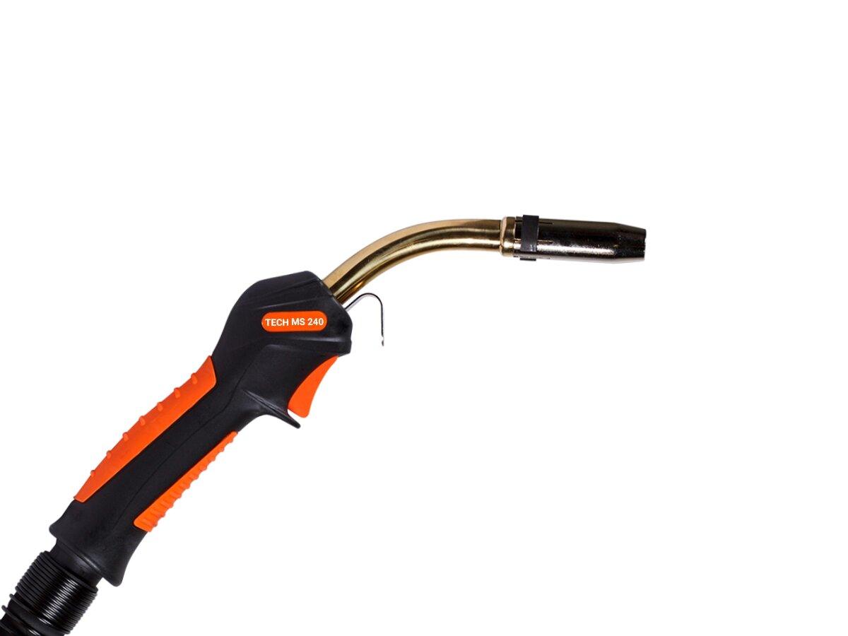 ul.customprod li{list-style-type:disc;padding-left:5px;}ul.customprod li:before{content:» «}Сварочная горелка TECH MS 240 предназначена для полуавтоматической сварки в среде защитных газов (MIG/MAG) на токах до 300 А.Взаимозаменяемость расходных частейРасходные части (сопло, наконечник, диффузор, вставка под наконечник) взаимозаменяемы с аналогами ведущих европейских брендов.КрюкДля удобства подвешивания горелки во время пауз в работе разработан специальный крюк.ГусакГусаки (как с воздушным, так и с водяным охлаждением) взаимозаменяемы с аналогами ведущих европейских брендовШарнирное соединениеШарнирное соединение повышает удобство вращения горелки во время работы. Также обеспечивается лучшее соединение между рукояткой и металлической пружиной. Надежная металлическая пружина исключает перегибание кабеля и обеспечивает более плавную подачу проволоки в любом положении горелки.Силовой кабельСечение силового кабеля обеспечивает хорошую проводимость тока и позволяет работать на максимальных нагрузках. Силовой кабель обладает максимальной гибкостью и равномерной теплопередачей. Использование высокотехнологичных материалов кабеля повышает его износостойкость.ЕвроадаптерС помощью евроадаптера горелка легко подключается к большинству моделей известных производителей полуавтоматического оборудования.Дизайн и эргономикаУникальный дизайн является воплощением эргономики, удобства и фирменного стиля Сварог. Благодаря продуманной форме рукоятка идеально лежит в руке. Для повышения удобства рукоятка оснащена силиконовыми вставками.