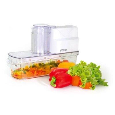* Мощность: 50 Вт* Съёмный контейнер ёмкостью 1,75 л* 3 толкателя разного диаметра* Съёмные насадки: — 2 насадки-тёрки — 3 вставки для нарезания соломкой и ломтиками — для картофеля фри — для колки льда* Резиновые ножки для дополнительной устойчивости* Легкость использования и чистки