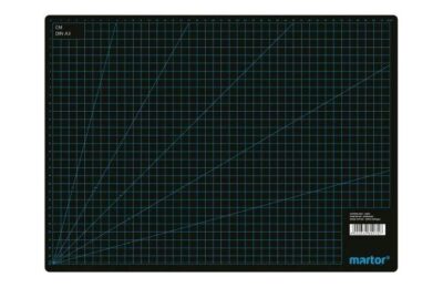При работе с бумагой, толстым картоном, пленкой и т.п. лучше подкладывать специальный cамовосстанавливающийся трехслойный коврик MARTOR из прорезиненного пластика, который обладает высокой устойчивостью к порезам. Имеет матовую рабочую поверхность. С обеих сторон коврика нанесена разметочная сетка: на переднюю сторону нанесена метрическая шкала, с обратной стороны напечатана дюймовая. Максимальный формат документов А3.