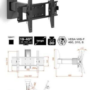 Доставка по Беларуси!Рассрочка!* Диагональ ТВ: 10-24»* Максимальная нагрузка: 30 кг* Максимальное расстояние между крепежными отверстиями: — по горизонтали 100 мм- по вертикали 100 мм* Угол наклона: от -20о до +20о* Максимальное расстояние от стены: 393 мм* Минимальное расстояние от стены: 100 мм* Производитель: Lumi Legend Corporation, 22/F, Building 1, Lisi Plaza, Huifeng East Road, Ningbo (Китай)