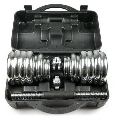 Металлические гантели Набор гантелей хромированных Atlas Sport в чемодане 20 кг