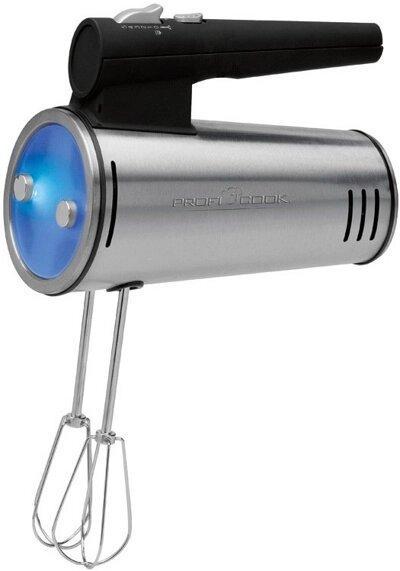 * Мощный профессиональный двигатель, 300 Вт* Корпус из нержавеющей стали* 5 уровней скорости* ТУРБО режим* Ручка с покрытием Soft-Touch* Вставка с синей подсветкой* Венчики и крюки для замешивания из нержавеющей стали, пригодны для посудомоечной машины* Аксессуары: 2 венчика, 2 крюка для замешивания и 1 погружной блендер из нержавеющей стали* Производитель: Profi Cook Industriering Ost40, 47906 Kempen, Германия* Завод-изготовитель: Fresh Element International Co. Ltd. Room 010502, No. 688 Middle Siming Road, Ningbo, Китай* Импортер: ООО «Дагфарн», Минская обл., Михановичский с/с, д. Калинино, здание бывшей школы начальных классов * Сервисный центр: ООО «Мегоплант» , г. Минск, пр. Пушкина, д. 50, к.1а* Гарантийный срок: 1 год* Срок службы: 3 года