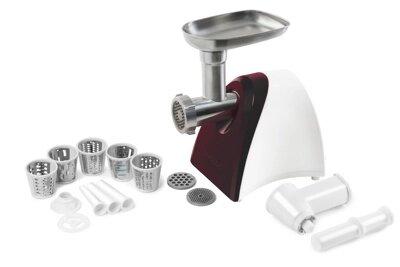 * Мощность при заблокированном двигателе, Вт: 1100* Производительность, кг/ч: 60* Потребляемая мощность, Вт: 130* Коробка для хранения аксессуаров* Перфорированный диск c отверстиями , шт: 2* Диаметр отверстий перфорированного диска , мм: 3,2/5* Насадка для изготовления колбасок, шт: 2 (маленькая, средняя)* Режущий блок для овощей* Насадка для терки, шт: 2 (мелкая, крупная)* Насадка для шинковки, шт 1 : (крупная)* Материал соединения шнека и моторной части: нержавеющая сталь* Приемный лоток для мяса: нержавеющая сталь* Сепаратор* Фиксирующая насадка* Толкатель для тёрок и шинковок* Клавиша стопора крепления головки мясорубки* Защита от перегрева* Материал корпуса* Отсек для хранения шнура* Вес изделия, кг: 2,86* Размеры: (ВхШхГ) 400х205х310 мм