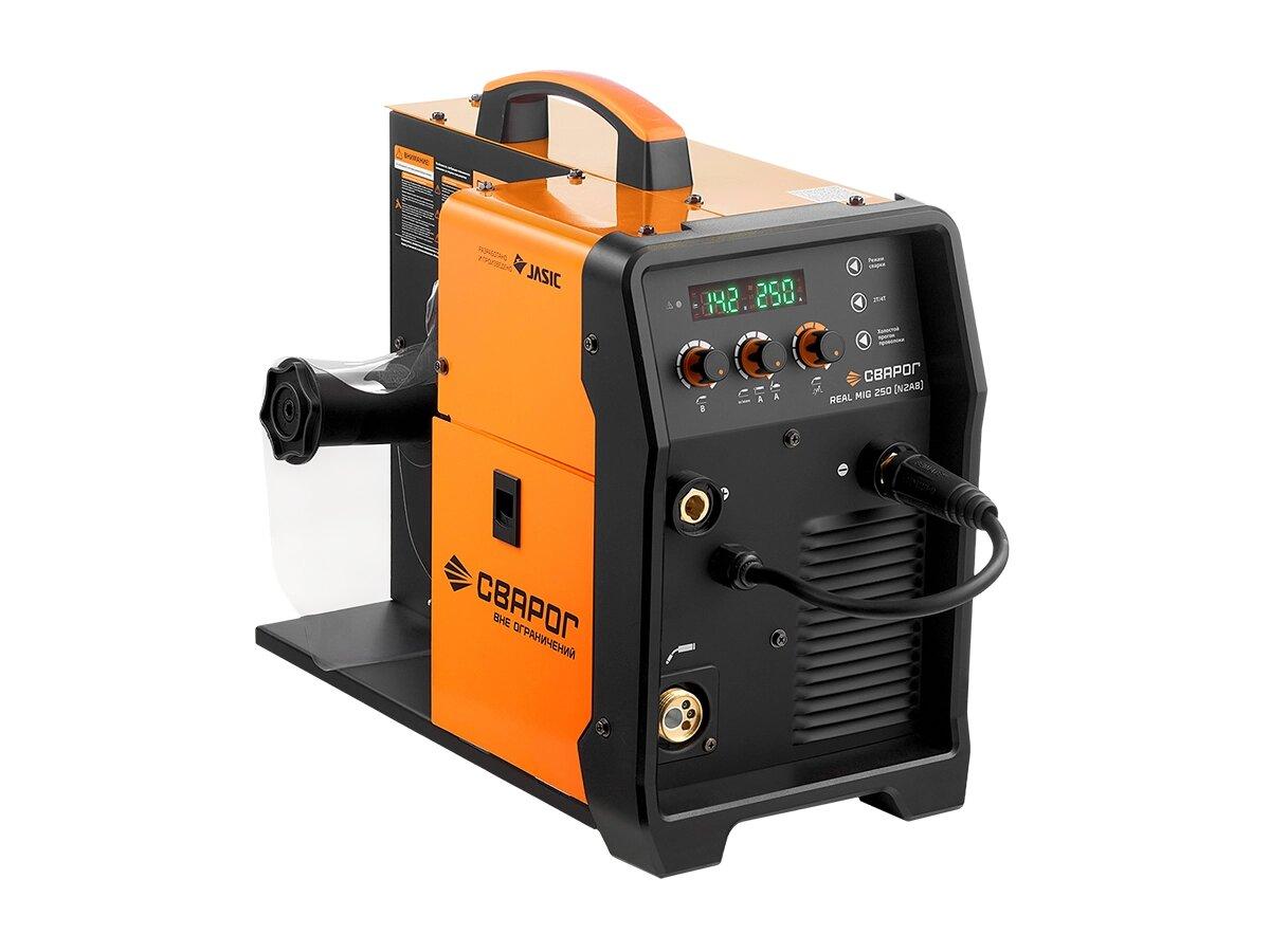 ul.customprod li{list-style-type:disc;padding-left:5px;}ul.customprod li:before{content:» «}REAL MIG 250 (N2A8) — это полуавтоматический сварочный аппарат с током сварки до 250 А, надёжное решение для профессиональной и промышленной сварки. Аппарат рассчитан на использование проволоки диаметром 1,2 мм и обеспечивает стабильную дугу и глубокий провар.Отличительными особенностями аппарата являются:REAL MIG 250 (N2A8) — профессиональный сварочный полуавтомат, рассчитанный на работу от промышленной сети 380 В.Аппарат обеспечивает сварочный ток до 250 А, поддерживает проволоку диаметром до 1,2 мм и справляется с металлом толщиной до 8 мм за один проход.Надёжное решение для промышленного производства, автосервисов и строительно-монтажных работ.Установка катушек с проволокой D 300 и D 200 на 20 и 5 кг, розетка 36 В для подогревателя газа.REAL MIG 250 (N2A8) работает от питающей сети 380 ВАппарат подключается к трёхфазной сети 380 В с рабочим диапазоном 320–430 В.Такое подключение гарантирует стабильную работу при высоких нагрузках и позволяет использовать оборудование в условиях интенсивного производства без просадок напряжения и снижения качества сварки.Бесперебойная устойчивая работа при температуре 40°Аппарат стабильно функционирует при температуре от –15 до +40 °C.Благодаря туннельной системе охлаждения и интеллектуальной вентиляции, аппарат не перегревается и не выключается даже при длительной работе.Защита от перегрузки и перегрева обеспечивает безопасность и долговечность эксплуатации.Дополнительные функции:Регулируемое время дожигания проволоки: настраивает время, в течение которого проволока продолжает подаваться после завершения сварки, обеспечивая качественное завершение шва.Регулируемое время продувки газом до и после сварки: позволяет установить время подачи защитного газа до начала и после завершения сварки для предотвращения окисления шва.Сброс настроек к заводским: возвращает все параметры к заводским значениям.Калькуляция времени работы аппарата: отображает общее время работы аппарата, что удобно для планирования обслуживания.Функция Antistick, автоматическое снижение силы сварочного тока: до минимального во избежание залипания электрода во время сварки.Функция VRD снижающая выходное напряжение холостого хода: до безопасного уровня, когда сварочный аппарат включен, но сварка не проводится. Применяется в помещениях с повышенной влажностью.Функция Arc Force реализована в режиме MMA и предназначена для повышения стабильности сварочной дуги при работе покрытыми электродами, особенно на малых токах. Во время сварки система автоматически регулирует сварочный ток при коротком замыкании дуги — это позволяет избежать залипания электрода к изделию.Удобная система управления:Панель управления REAL MIG 250 (N2A8) оснащена интуитивно понятными органами управления и цифровым дисплеем, обеспечивая точную настройку параметров сварки. Ниже представлены элементы панели и их функции:1-Регулятор напряжения на дуге: позволяет точно установить сварочное напряжение для оптимального качества шва.2-Регулятор скорости подачи проволоки / силы сварочного тока: регулирует скорость подачи проволоки в режиме MIG и силу тока в режимах MMA и TIG.3-Регулятор индуктивности: обеспечивает настройку жёсткости дуги, влияя на глубину провара и разбрызгивание металла.4-Кнопка холостого прогона проволоки: позволяет пода