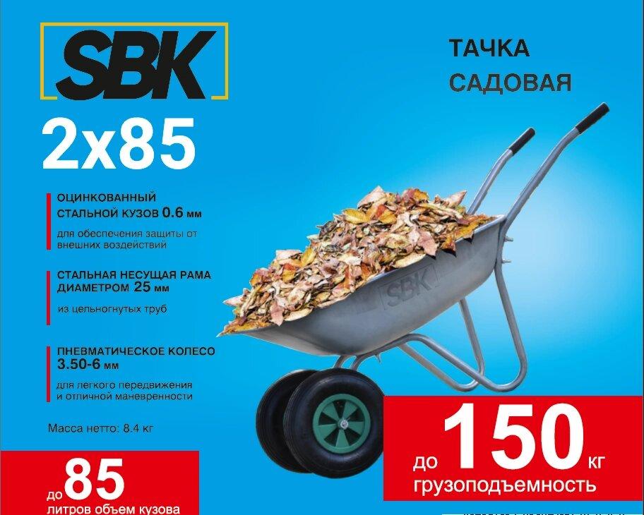 Тачка садовая SBK 2×85 (до 85л, до 150 кг, 2×3.5-6, пневмо, ось 16*90)