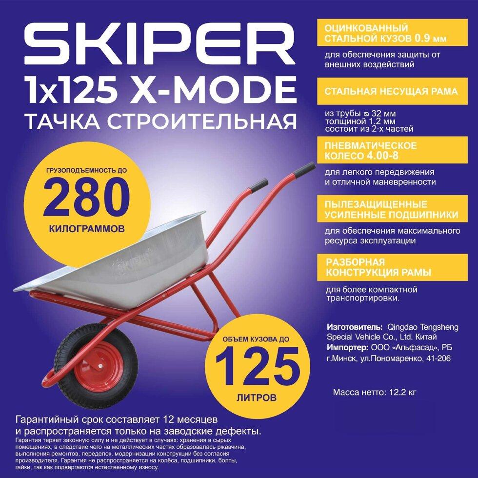 Тачка строительная SKIPER 125 X-MODE (до 125л, до 280кг, 1×4.00-8, пневмо, ось 16х100, разб. рама)